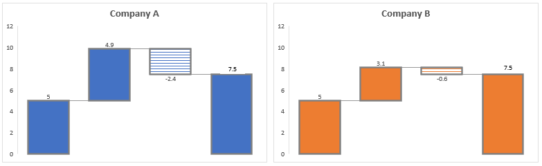 While both companies are growing the business at the same rate, their customer life-cycle evolve at different clips. Company A is adding 58% more new revenue than Company B but losing 300% more revenue to get to the same year end revenue. Because Company A is losing customers at a quicker rate, its customer acquisition cost will increase, putting more pressure on new sales to increase the revenue growth.